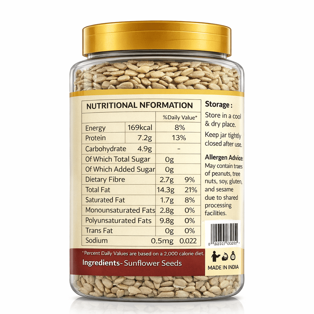 • Sunflower Seeds: Boosts energy, skin health & provides essential nutrients
